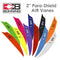 Denne luftstrøm skabt af den præcise forkants vinkel tillader spidsen af hver en fane at handle som et ror, der er mærkbar på længere afstande med den fladere bane Blazer faner giver.